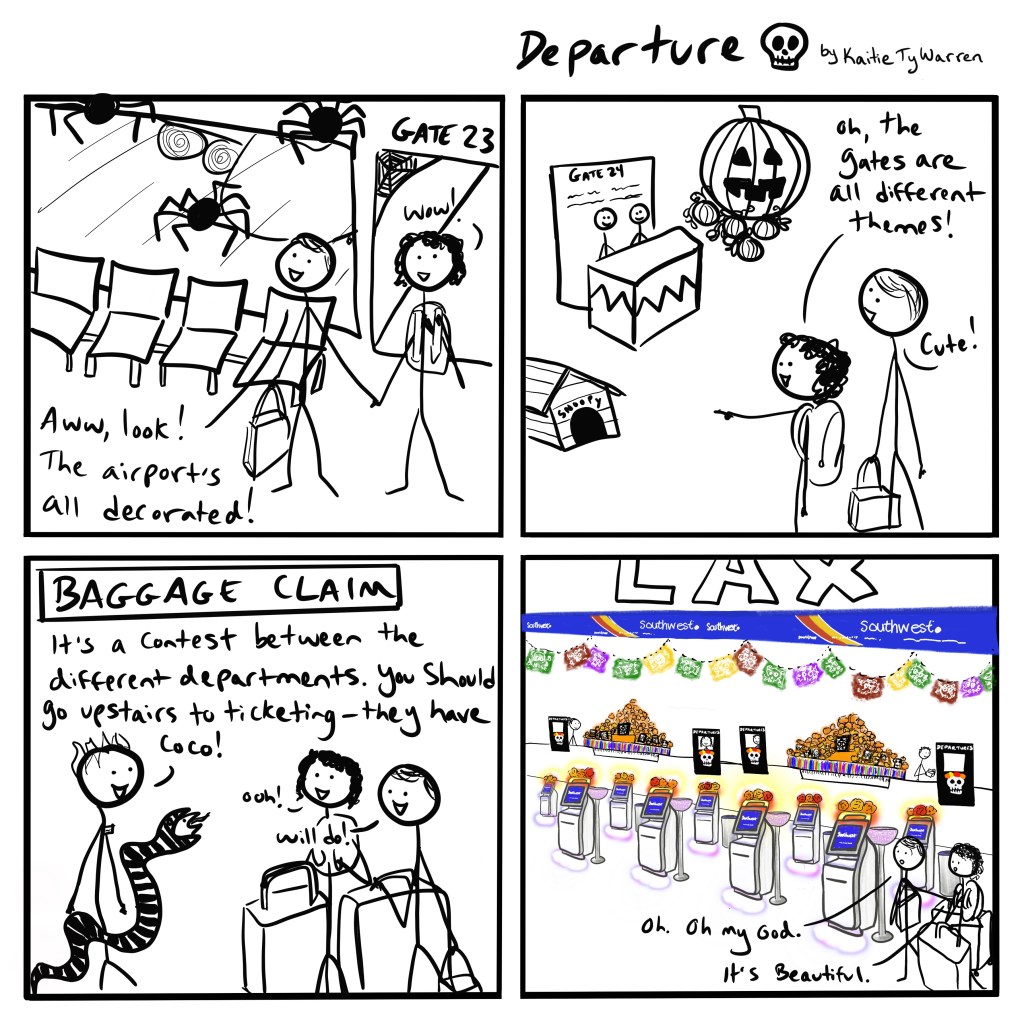 A cartoonist whenever freetime permits, Kaitie does a lot of stick figures and process paintings, including deliberate ones with her left hand (non-dominant) to capture expression and essence, and steer away from “correctness.” She loves collage, and theatrical tech, including set and light design.